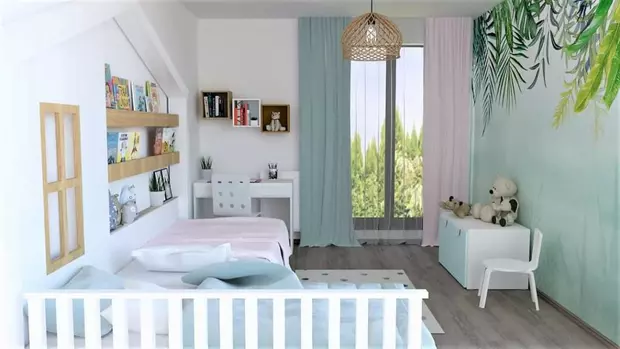 Când încăperea este împărţită de doi copii, băiat şi fata decorarea acesteia poate fi provocatoare. Cei mici au nevoie de zone de odihnă bine delimitate, iar în astfel de situaţii sunt ideale modelele de paturi Montessori tip căsuţă în formă de L. Aceste corpuri sunt organizate cu spaţii pentru depozitarea obiectelor, cu sisteme tip gard de siguranță şi vin cu rafturi deschise pe verticală ce permit păstrarea jucăriilor şi a instrumentelor creative. Într-o astfel de încăpere se pot monta un birou minimalist cu scaun pentru studiu şi un cufăr cu scăunel ce poate fi transformat în zona de organizare şi joacă pentru micuţul preşcolar. Echilibrul cromatic se va obţine prin montarea de tapete vesele şi integrarea de textile în culori pastel. Aspectul estetic distins va fi completat de corpuri de iluminat cu accente naturale. O paletă cromatică blândă cu nuanţe inspirate din natură va oferi amenajării un aer revigorant.