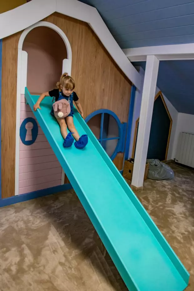 În primii ani de viață mișcarea este importantă pentru o dezvoltare armonioasă. Un dormitor cu centre de activități dinamice este soluția de a-i oferi copilului posibilitatea de a se bucura de mișcare şi în interior. Mansarda, cu formele atipice, poate deveni o încăpere distinsă în special dacă este amenajată după principiile Montessori. Patul jos realizat din lemn masiv şi rafturile deschise pot fi completate de un centru de activităţi cu tobogan. Un asemenea decor va oferi copilului posibilitatea de a-şi organiza singur lucrurile personale şi de a-şi consuma energia. Într-o astfel de încăpere este recomandat să se acorde atenție aspectelor ce țin de acoperirea podele. Pentru a se evita accidentările nedorite şi alunecările este ideal să se integreze mochete moi şi pufoase.