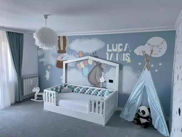 Cu siguranță, camerei unui băiețel preşcolar poate fi veselă chiar şi când sunt utilizate nuanțe pastel şi culori neutre. Organizarea Montessori permite crearea unei încăperi cu estetică excepțională folosindu-se culori reci. Patul din lemn cu gărduleţ de protecţie este opţiunea ideală pentru micuţii dornici de explorarea a împrejurimilor, pentru cei ce exersează mersul fără ajutorul părinților. Cortul de activități, căluţul din lemn şi mocheta pufoasă sunt elementele ce întregesc un decor bine valorificat. Corpurile de iluminat şi accesoriile textile ideale sunt cele realizate din materiale naturale, prietenoase ce susțin sănătatea micuţilor.