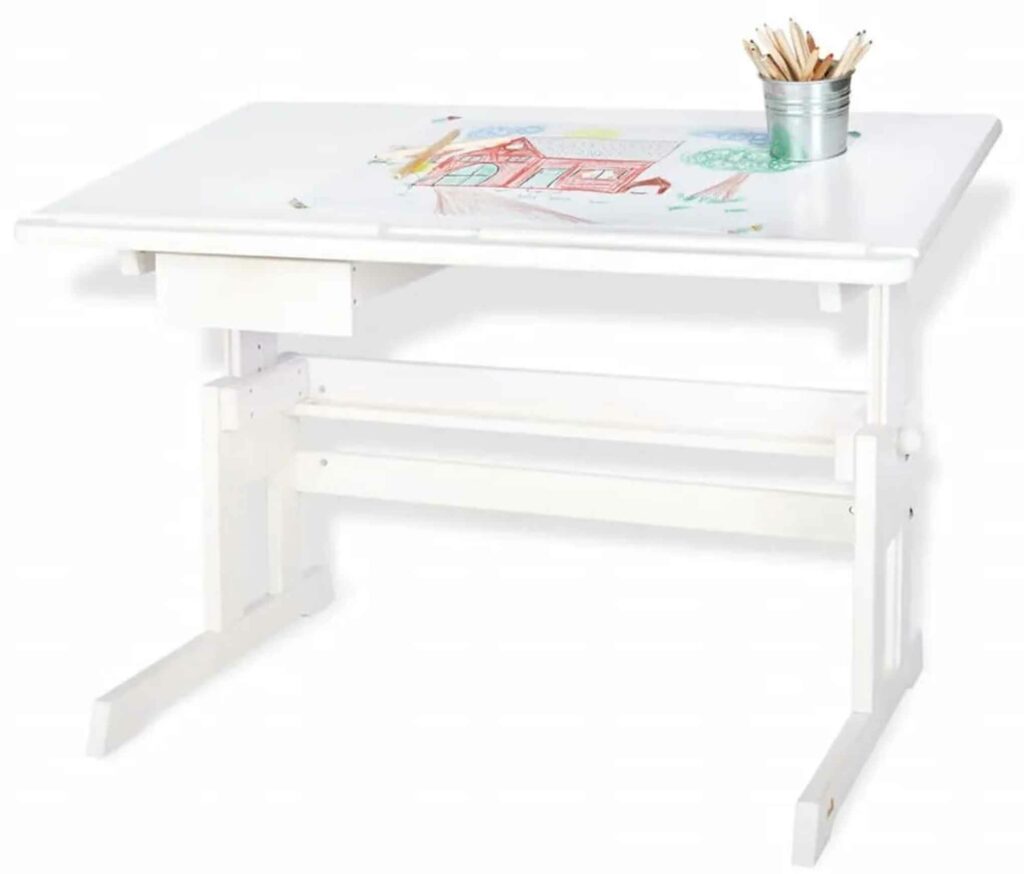 Atunci când alegeți un birou reglabil pentru copii, țineți cont de faptul că, într-o zi, aceasta va fi folosit nu numai pentru desenat, ci și pentru a-și face temele. Prin urmare, blatul de lucru trebuie să fie suficient de mare – alegeți o lățime de aproximativ 80 cm și o lungime de cel puțin 90 cm, ideal fiind 120 cm.