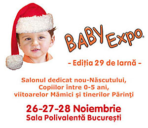 Parintii sunt invitati la BABY EXPO de Vineri, 26 Noiembrie pana Duminica, 28 Noiembrie, zilnic Intre orele 10.00 si 20.00, iar Duminica pana la ora 17.00, la Sala Polivalenta din Bucuresti.