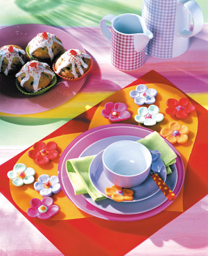 Din alta bucata de fimo se modeleaza mici bobite care se vor aseza in mijlocul florilor.