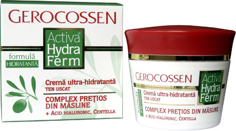 Gerocossen Activa Hydraferm este o crema ultra-hidratanta de zi, cu o formula inovatoare realizata pentru tenul uscat, pe baza de complex pretios din masline, ce hraneste epiderma, acid hialuronic ce regleaza hidratarea si centella, pentru marirea fermitatii pielii.