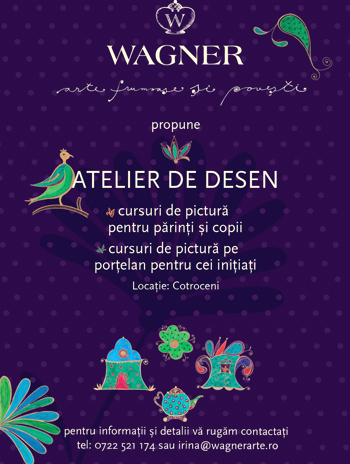 La sfarsitul lunii martie, Atelierul Wagner Arte Frumoase si Povesti organizeaza, pentru bucuresteni, parinti si copii deopotriva, cursuri de pictura pe portelan.
