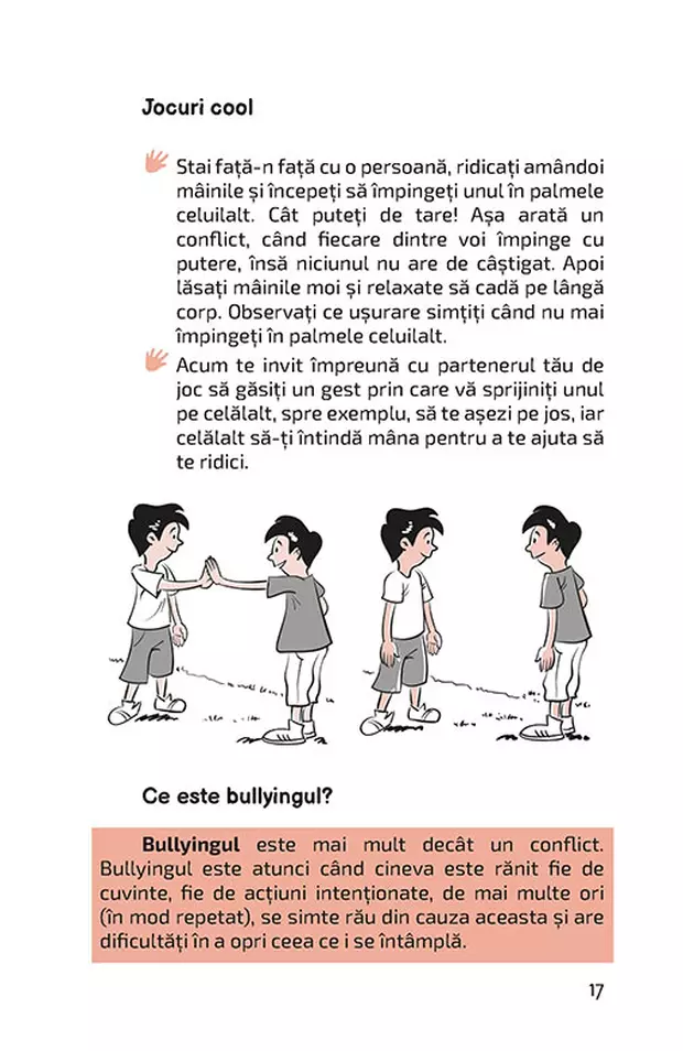 Cartea îi poate inspira deopotrivă și pe părinții și profesorii care vor să facă o educație fără bullying și să prevină agresiunile din mediul școlar primar și gimnazial. Beneficiind de experiența specialiștilor, care au lucrat la legea care previne bullyingul în România, cartea este un sprijin valoros pentru copii, pentru toți cei implicați în prevenirea și rezolvarea cazurilor de bullying în mediul educațional.
