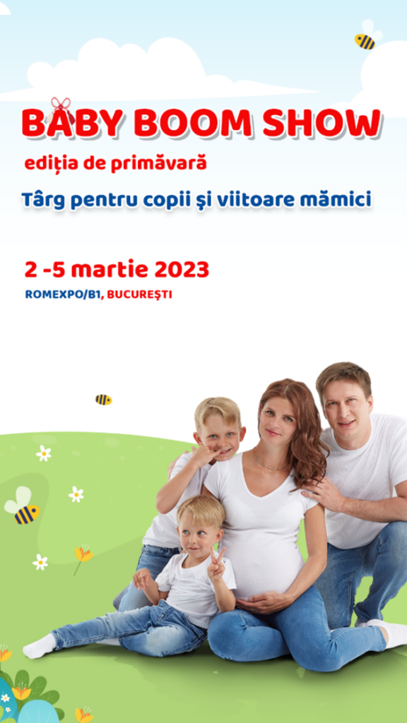 Între 2 şi 5 martie are loc Baby Boom Show, cel mai mare târg pentru copii şi viitoare mămici. De joi până duminică, vă aşteptăm în pavilionul B1 de la Romexpo cu cele mai noi modele de cărucioare, super oferte la pachete de naştere şi recoltare celule stem, discounturi de până la 70% la peste 250 de branduri pentru copii, tombole cu premii substanţiale, 17 cursuri gratuite pentru viitorii şi proaspeţii părinţi, loc de joacă pentru copii, LIVE Stage cu lansări de produse, scenă cu spectacole, restaurant pentru copii şi bebeluşi!