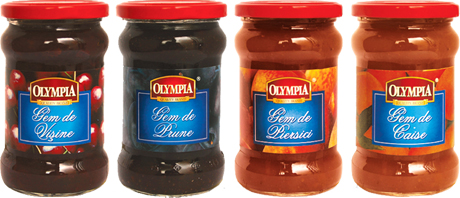 Gama gemurilor Olympia cuprinde 4 sortimente: Gem de piersici, Gem de caise, Gem de prune, Gem de visine.