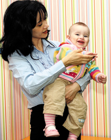 Vrea sa mearga mai mult – ii place sa fie sustinuta, sare ca pe arcuri, ca un iepuras, si adora sa sara in pat – se tine ea de mine si sare in pat si e foarte fericita. Baita ramane momentul ei preferat.