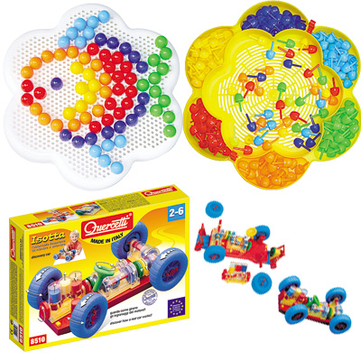 Jucariile inteligente Quercetti, concepute pentru a dezvolta abilitatile si creativitatea copiilor. Ele au fost elaborate impreuna cu renumiti psihologi si psihopedagogi si au fost create pentru fiecare grupa de varsta in parte.