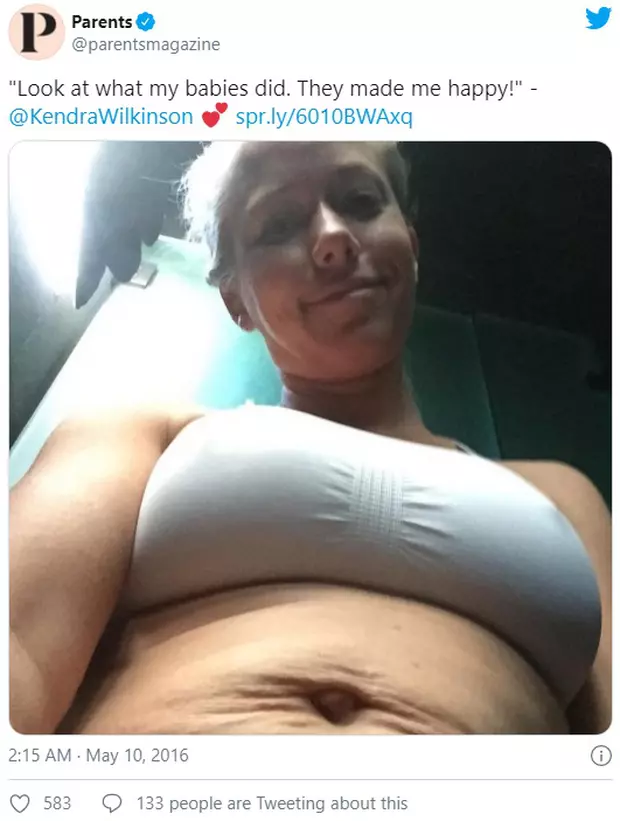 Kendra Wilkinson, vedeta de televiziune si fotomodel a ales ca de ziua mamei, sarbatorita in Statele Unite, sa posteze pe instagram o imagine in care i se vad vergeturile in urma sarcinii.