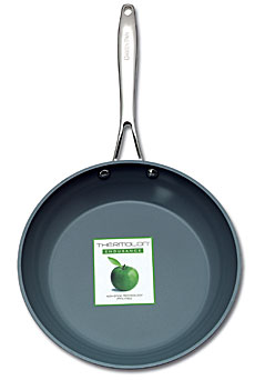 Thermolon – materia prima Green Pan – este o suprafata ceramica naturala antiadeziva care nu genereaza emanatii toxice si rezista la temperaturi de pana la 450°C.