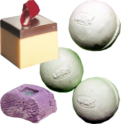 Sarurile de baie Lush contin bicarbonat de sodiu pentru a deduriza apa si a o face lucioasa. Sunt indicate pentru o piele uscata, sensibila.