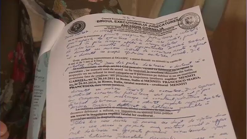 La plecare din Italia, femeia a obtinut o procura prin care tatal isi dedea acrodul ca femeia sa plece din tara cu copiii pe o perioada de 3 ani. In momentul in care femeia a primit procura de la primaria din Roma, cei doi soti lucuiau deja separat.