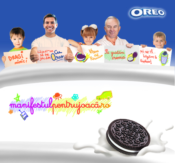 www.manifestulpentrujoaca.ro, site-ul unde taticii fac cele mai dragute lucruri alaturi de copiii lor, doar- doar ii veti lasa pe toti sa se joace cu Oreo, biscuitul preferat al laptelui.