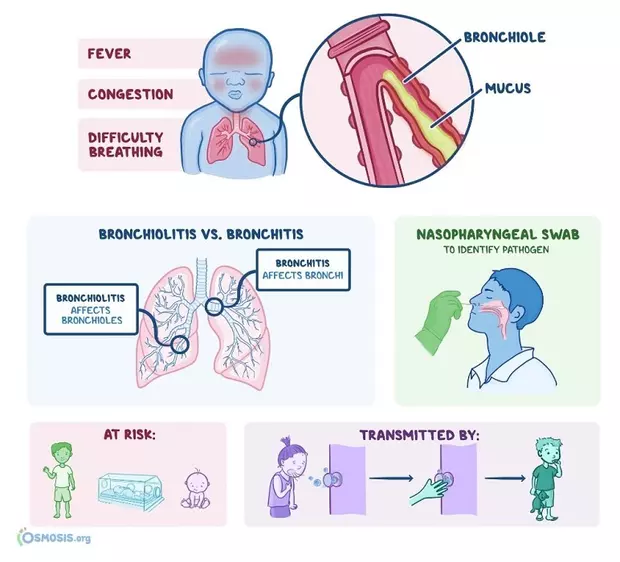 Deci copiii foarte mici (frecvența maximă a bolii apare între 3 și 6 luni) în timpul sezonului rece (când circulă multe virusuri respiratorii) pot face boala, chiar dacă nu merg la creșă. Virusurile se transmit prin picături Pflügge sau prin mâini nespălate, ce au fost contaminate cu aceste virusuri.