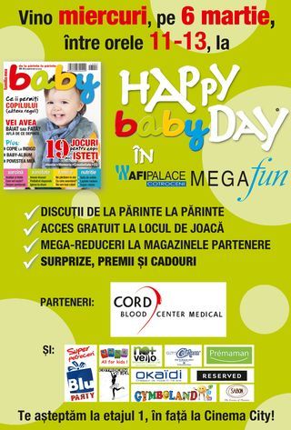 Vino miercuri, 6 martie, in AFI Palace Cotroceni Mega Fun, de la ora 11, sa petrecem impreuna o HAPPY baby DAY!