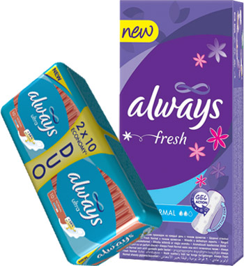Always Ultra contine cu 20% mai mult gel absorbant, ce retine lichidul in interior si ofera protectie imediata.
