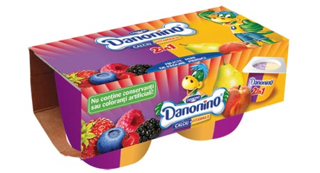 Danonino ii surprinde pe cei mici si pe mamici cu o noua varianta de branzica de vaci cu piure de fructe: fructe de padure si pere cu piersici.