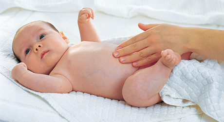 Una dintre cele mai eficiente tehnici de masaj este cea a mulsului': poti cuprinde bratele si picioarele bebelusului, pe rand, cuprinzandu-le intre ambele tale maini si coborandu-ti tu bratele si presand usor.
