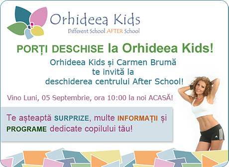Din 15 septembrie, noul centru After School Orhideea Kids' poate fi pentru copilul tau CASA dinainte de a ajunge acasa. Situat in Calea Plevnei 145B, in incinta complexului Orhideea Gardens, Orhideea Kids este rezultatul pasiunii unei echipe de profesionisti.