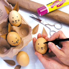 1. Daca nu vrei sa risti o bomba de miros' peste cateva saptamani, cand copiii vor sparge ouale din intamplare', mai bine foloseste oua golite de continut. Foloseste oua crude, da doua gaurele, una sus si una jos, si trage continutul cu o seringa.