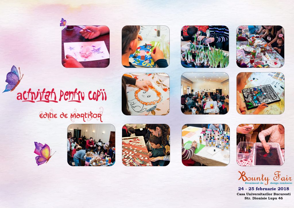 Bounty Fair a pregătit pentru tine un târg plin de mărțişoare unicat, realizate manual de unii dintre cei mai talentați artizani romȃni, ȋntr-o diversitate de stiluri, dar și un mediu de dezvoltare creativă pentru cei mici și cei mai mari.