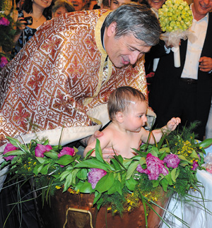 Distractiv pentru toti cei prezenti la botez a fost momentul in care, atunci cand a fost bagat in cristelnita, si-a intins tare piciorusele, iar apoi s-a apucat de marginea cazanului.