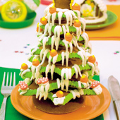 Se adauga in fiecare castron 1-2 picaturi de colorant alimentar si se amesteca. Se orneaza cu verde crengutele de brad, cu alb – fulgii de zapada, cu portocaliu si galben – globurile si cu rosu – ciupercutele.