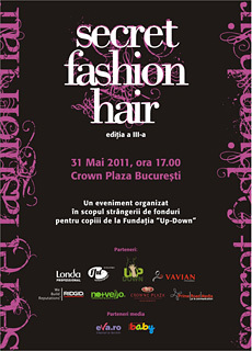 Secret Fashion Hair 2011 a fost, este si va fi un show de coafura pentru cei mai buni stilisti, fie ei experimentati sau incepatori. O intalnire dincolo de scaunul coaforului. O intalnire spectacol intre tine si stilistul tau. Pentru ca impreuna sa ii ajutati si pe cei care au intr-adevar nevoie de gandurile si actiunile tale bune: Fundatia Up Down.