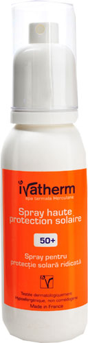 Permanent atenta la nevoile clientilor sai, compania Ivatherm a lansat si varianta de Spray Ivatherm pentru protectie solara ridicata SPF 50+ pentru adulti (flacon 125 ml), produs recomandat persoanelor cu o piele foarte alba, sensibila sau celor care din considerente medicale sunt nevoiti sa reduca la minim riscul expunerii la soare.