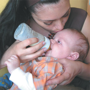 In situatia in care laptele mamei este insuficient sau daca aceasta nu poate alapta deloc, alimentatia copilului trebuie suplimentata cu lapte praf (Nan, Milumil, Bebelact sunt cateva dintre variante).