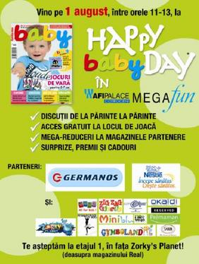 Te asteptam si pe tine la HAPPY baby DAY, miercuri, 1 august, de la ora 11. Ne intalnim la etajul 1, deasupra magazinul Real, in fata la Zorky’s Planet.