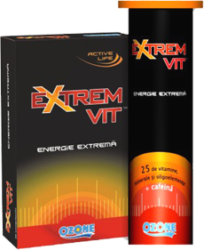 Complexul de vitamine Extrem Vit iti este aproape. Fie ca iti place varianta comprimate, fie ca iti place varianta efervescente, vei vedea ca efectul este acelasi: vei avea viata si dupa munca! Vei merge la sport, te vei mobiliza sa faci lucruri ce iti fac placere, ce te vor face sa te bucuri mai mult de viata.